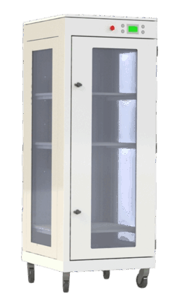 Серия шкафов сухого хранения ШСХ-З-Д оснащена панорамными стеклянными дверьми и боковыми панелями, что позволяет визуально контролировать содержимое без нарушения микроклимата. Этот шкаф сочетает в себе передовые технологии осушения и современную эстетику идеально подходящую для лабораторий и высокотехнологичных производств.
